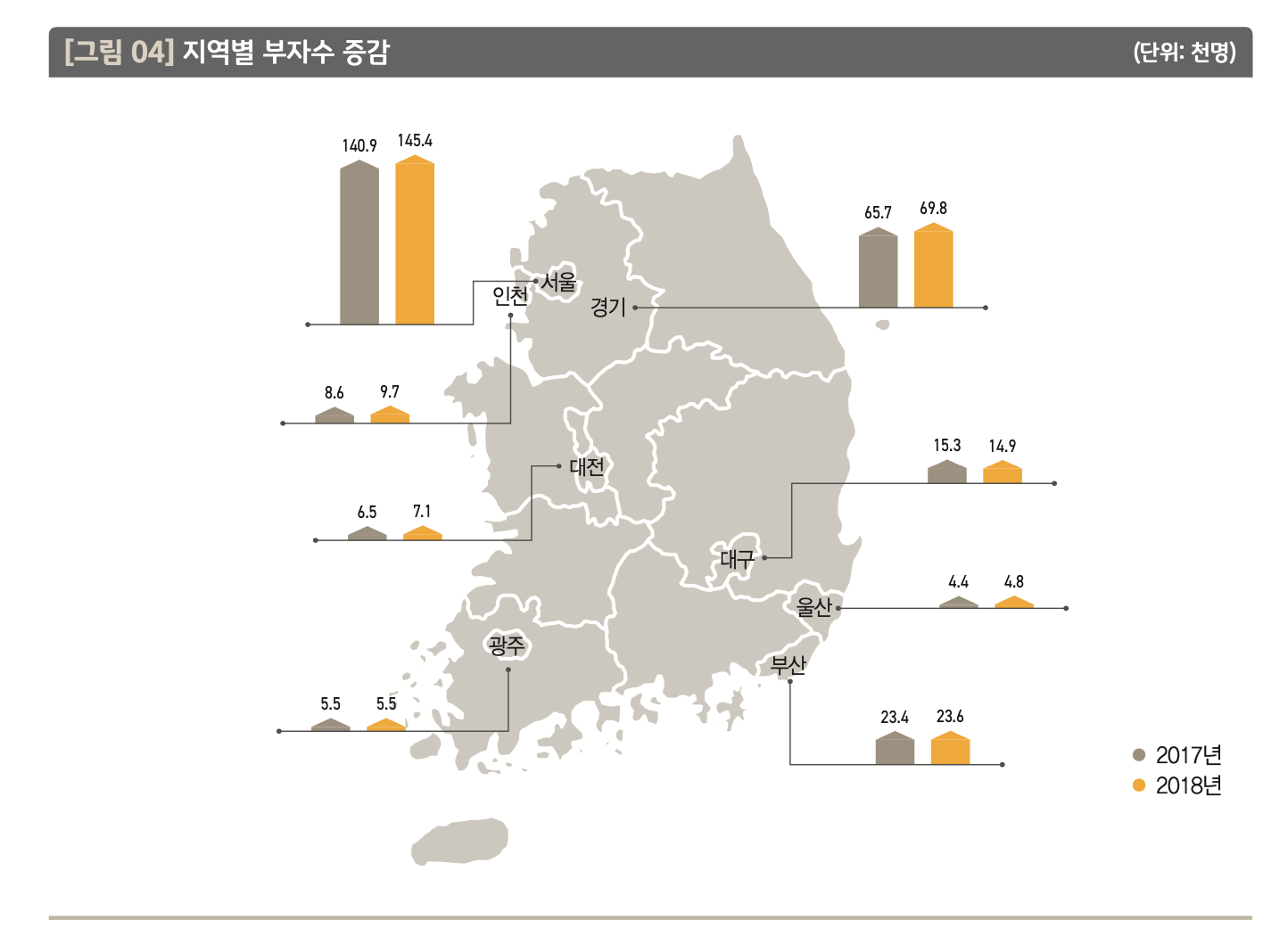 2. 부자는 서울에서 더 생겨났다. (2017년 대비 2018년 부자 증감 수)