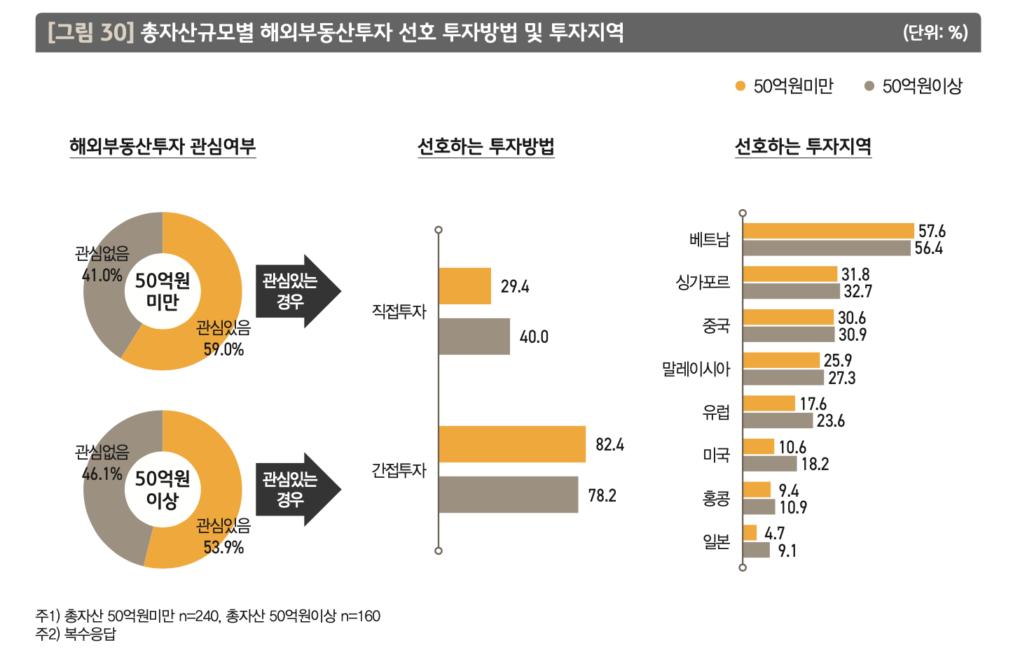 부자들은 해외부동산 투자에 관심이 있으며, 최고로 선호하는 투자지역은 베트남입니다.