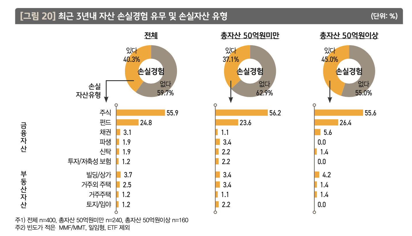 특히 주식에서 손해를 본 경험이 많다고 응답했습니다.