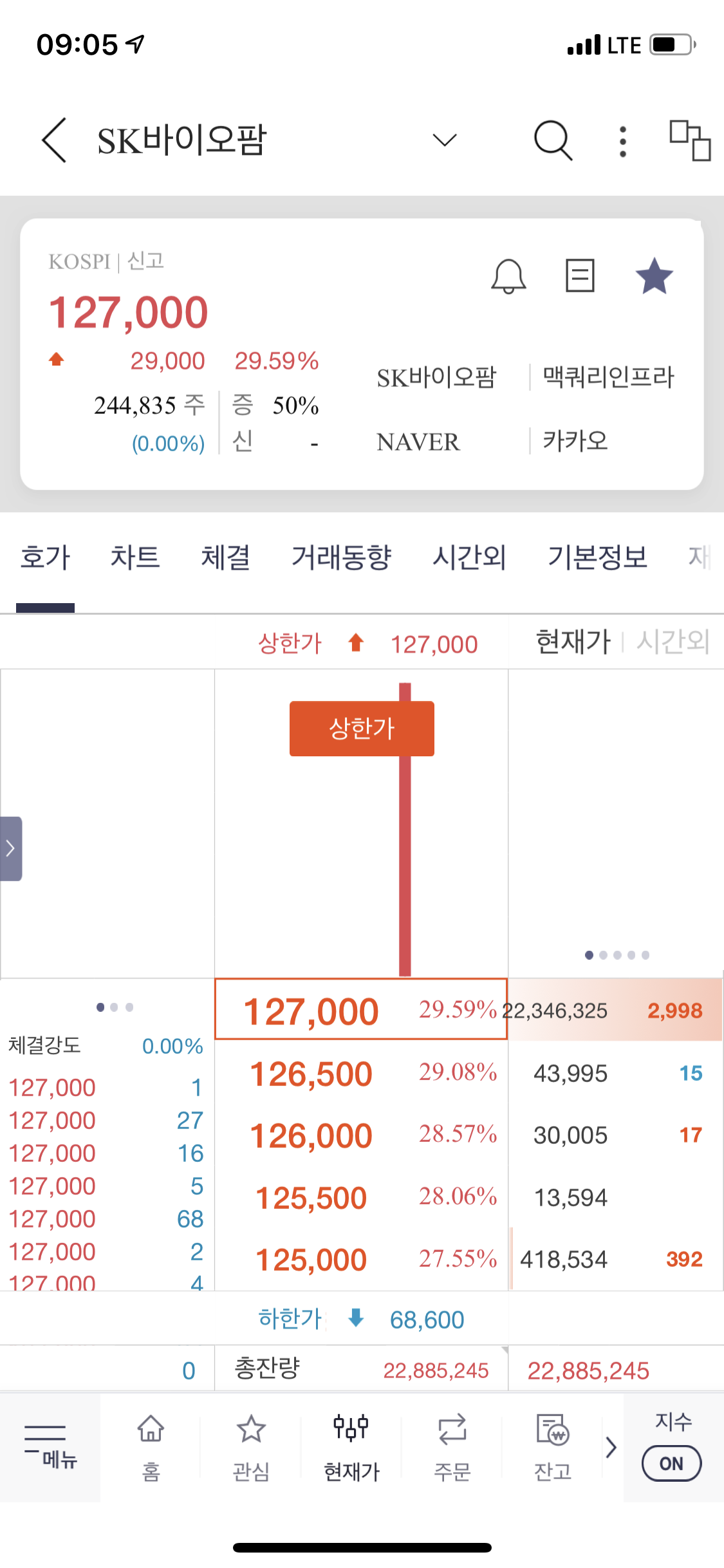 바로 상한가로 직행 중