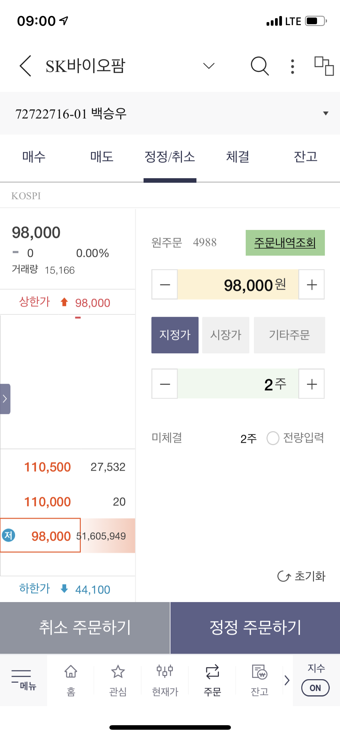 당연히 체결안되는 주문 취소하고 다시 상한가에 주문 넣어보지만!?