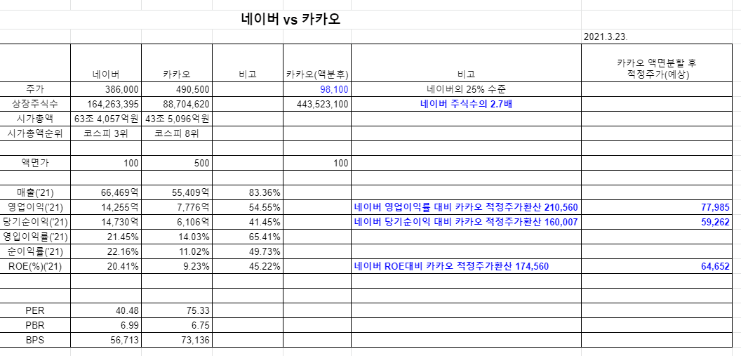 누군가는 네이버가 상대적 저평가라고 보기도 하겠고,