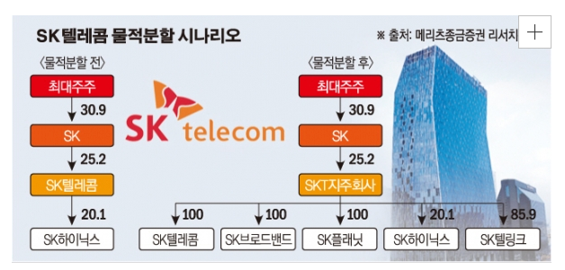 SK 밑에 SK하이닉스와 SK텔레콤(사업기업)이 각각 자회사로 완성이 될 예정이라는 거죠.
