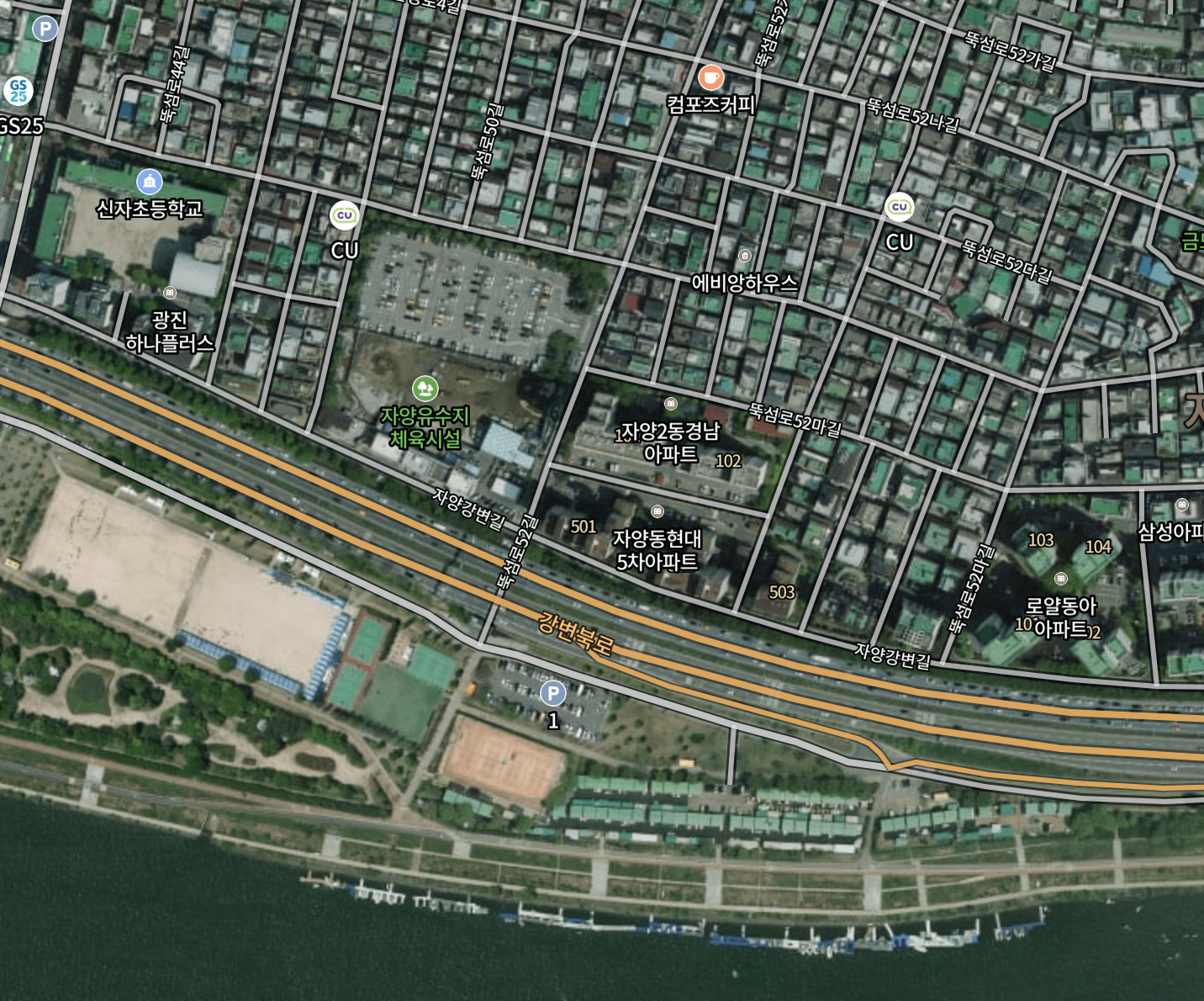 광진구는 뚝섬역(2호선)과 뚝섬유원지역(7호선) 지역과 구의동-광장동 쪽도 둘러봤었고, 자양동도 분명히 가봤었던 것 같은데 기억이 잘 안나네요. 다시 한번 가봅니다.