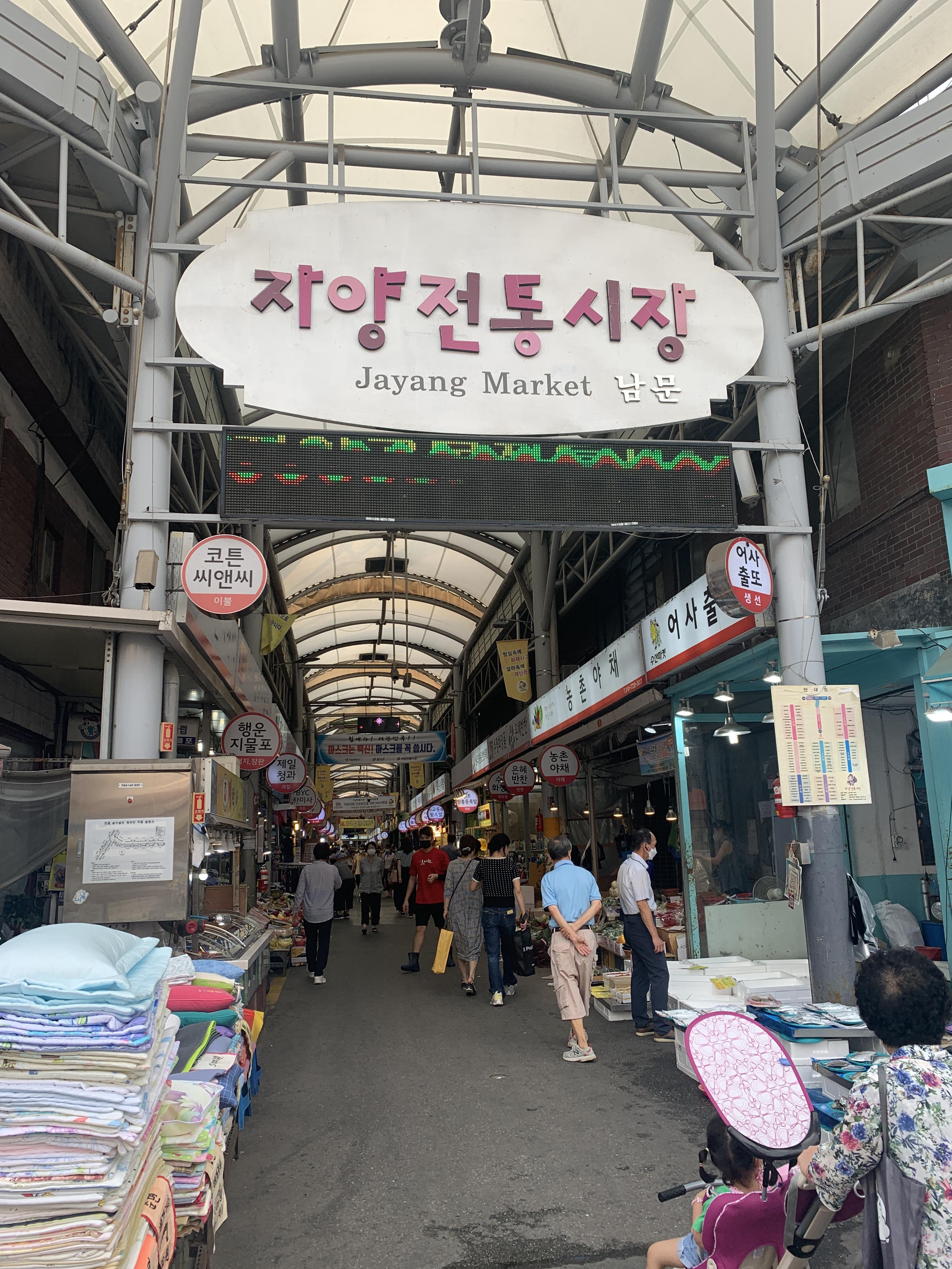 자양1동으로 들어서서 길을 따라 서남쪽으로 이동합니다. 자양1동 전통시장도 보입니다.